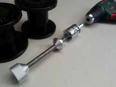 THE RIPPER/STRIPPER MOUNTED IN A DRILL CAN REMOVE LINE OFF A REEL WITH EASE. TRANSFER THE LINE ON TO THE SECOND SPOOL THEN RESPOOL IT ON THE REEL. NOW THE UNUSED NEW LINE THAT WAS ON THE ARBOR IS NOW ON THE OUTSIDE OF THE REEL. A MUST FOR THE EXPENSIVE BRAIDS AND HOLLOW CORE LINES.